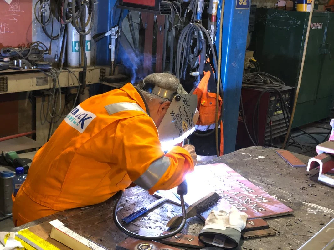 Vi retter også en stor takk til Kimek som har stilt utstyr, folk og lokaler til rådighet slik at stålplata kunne gjenskapes og kulturminnet igjen bli en helhet.