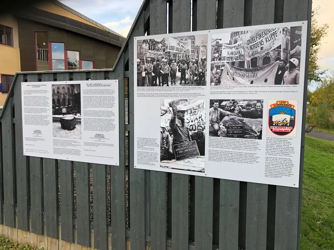 Under forberedelsene til markeringa i 1986 vedtok tillitsmannsutvalget i Nordens Klippe at vi skulle ha med oss en malmstein på 4-5 tonn, med en stålplate hvor det var sveiset en tekst mot nedbyggingsforslaget fra regjeringa. Vi fraktet den til Oslo og 17. mars 1986 ble den plassert foran Stortinget.