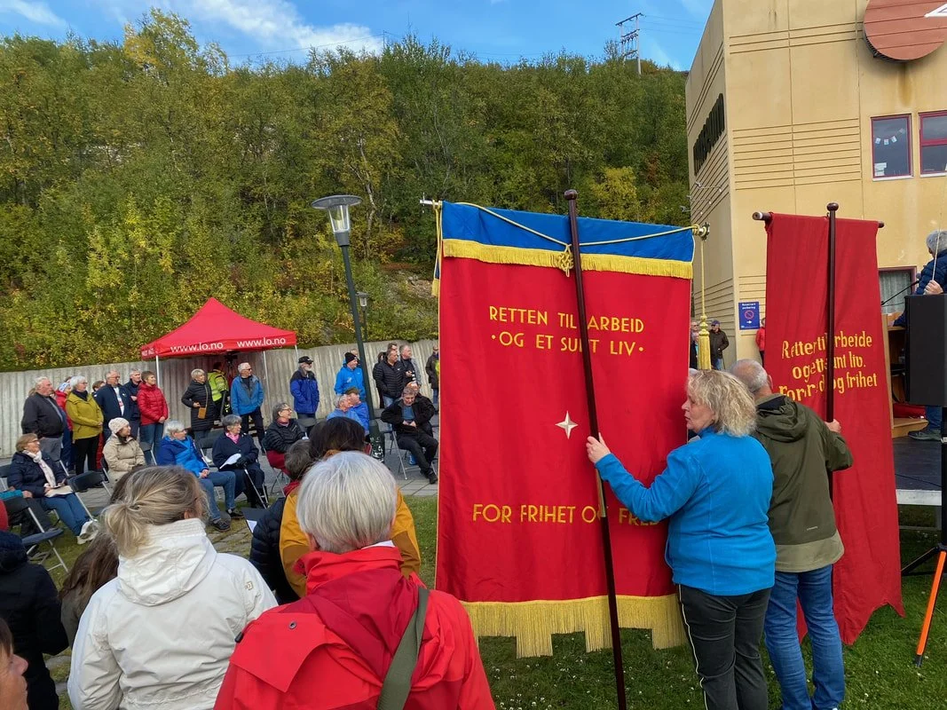Omlag 150 personer deltok i et demonstrasjons-tog fra Østbanen til Stortinget. Foran Stortinget møtte representanter fra ca. 30 fagforeninger med sine faner, bl.a. fra Sulitjelma.