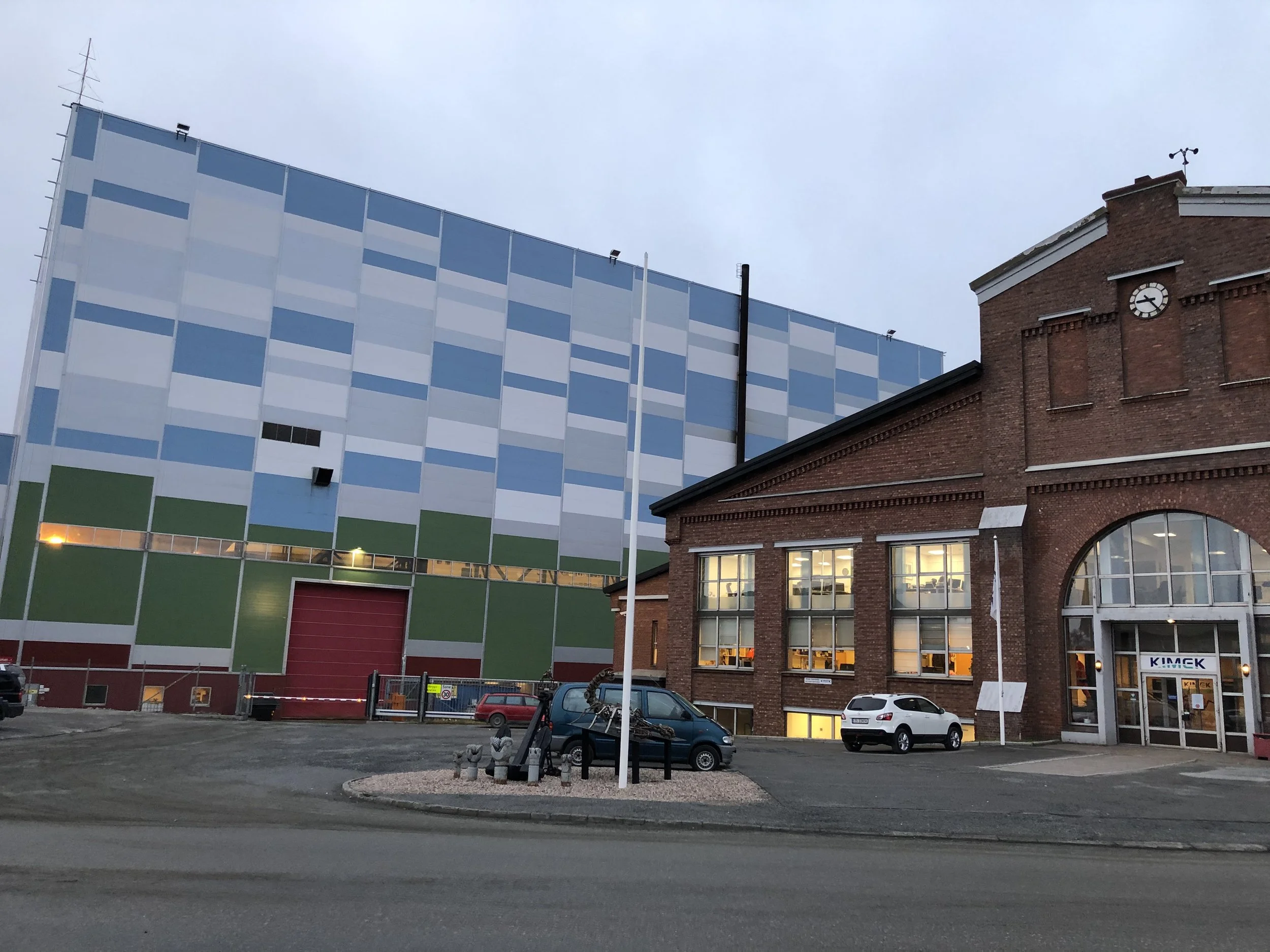 Bygget til høyre er den gamle Damsentralen til A/S Sydvaranger, her holder bla Kimeks administrasjon til. Til venstre og bak ser vi verkstedet. Foto: Stein Larsen