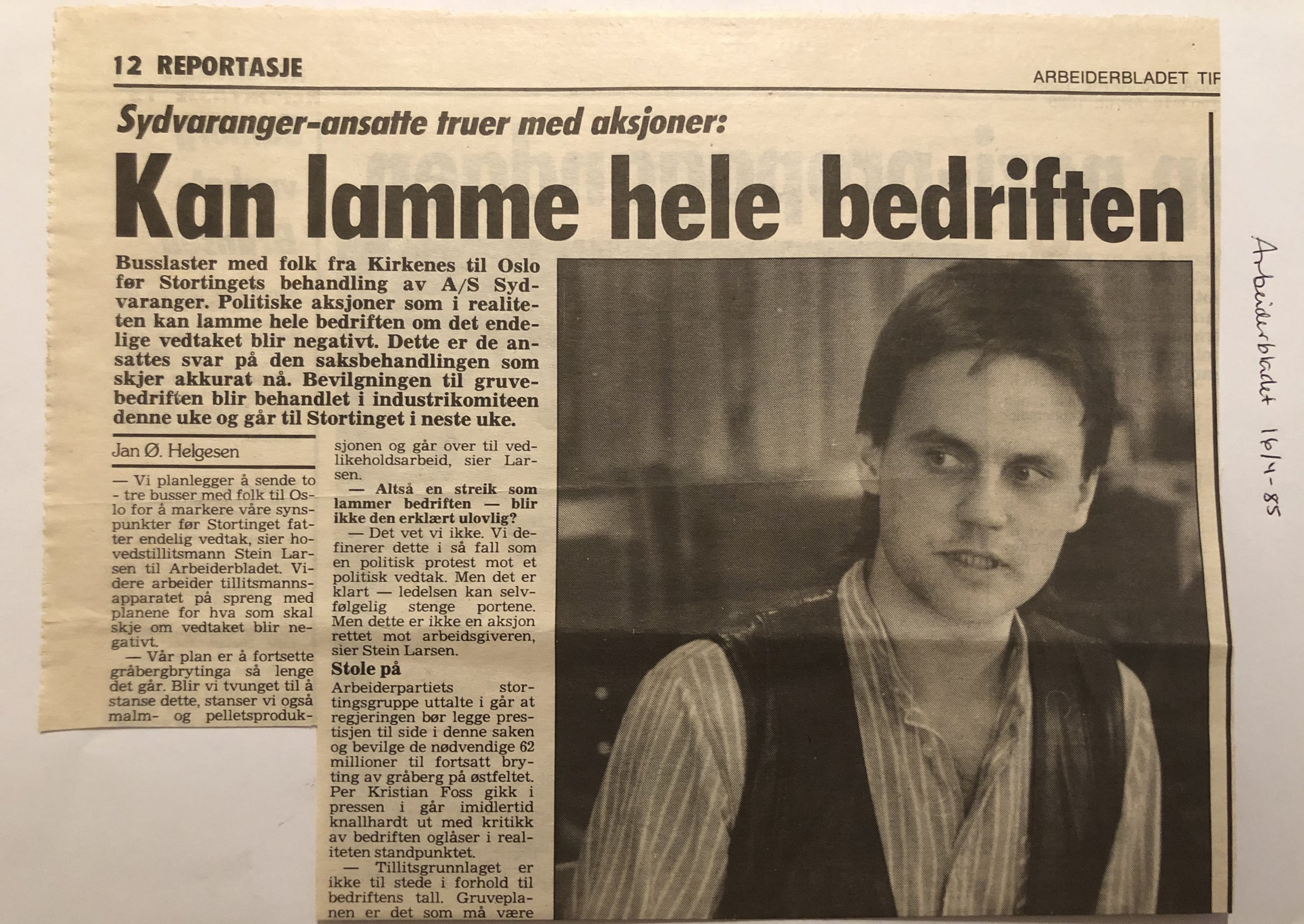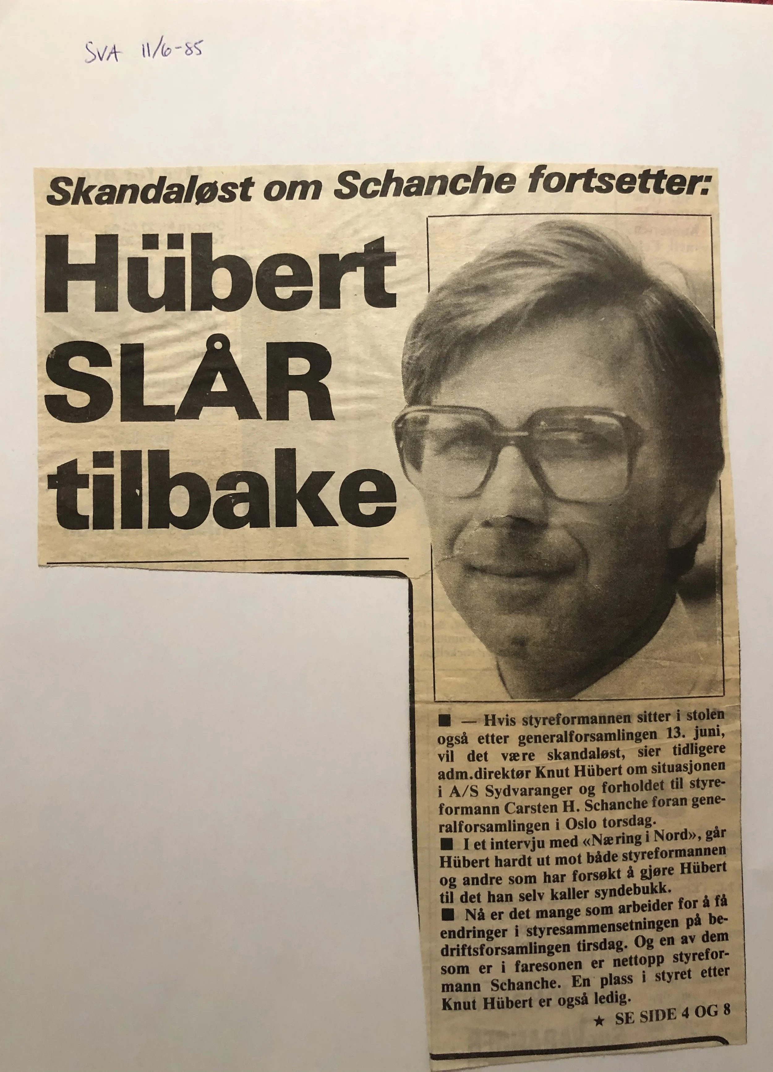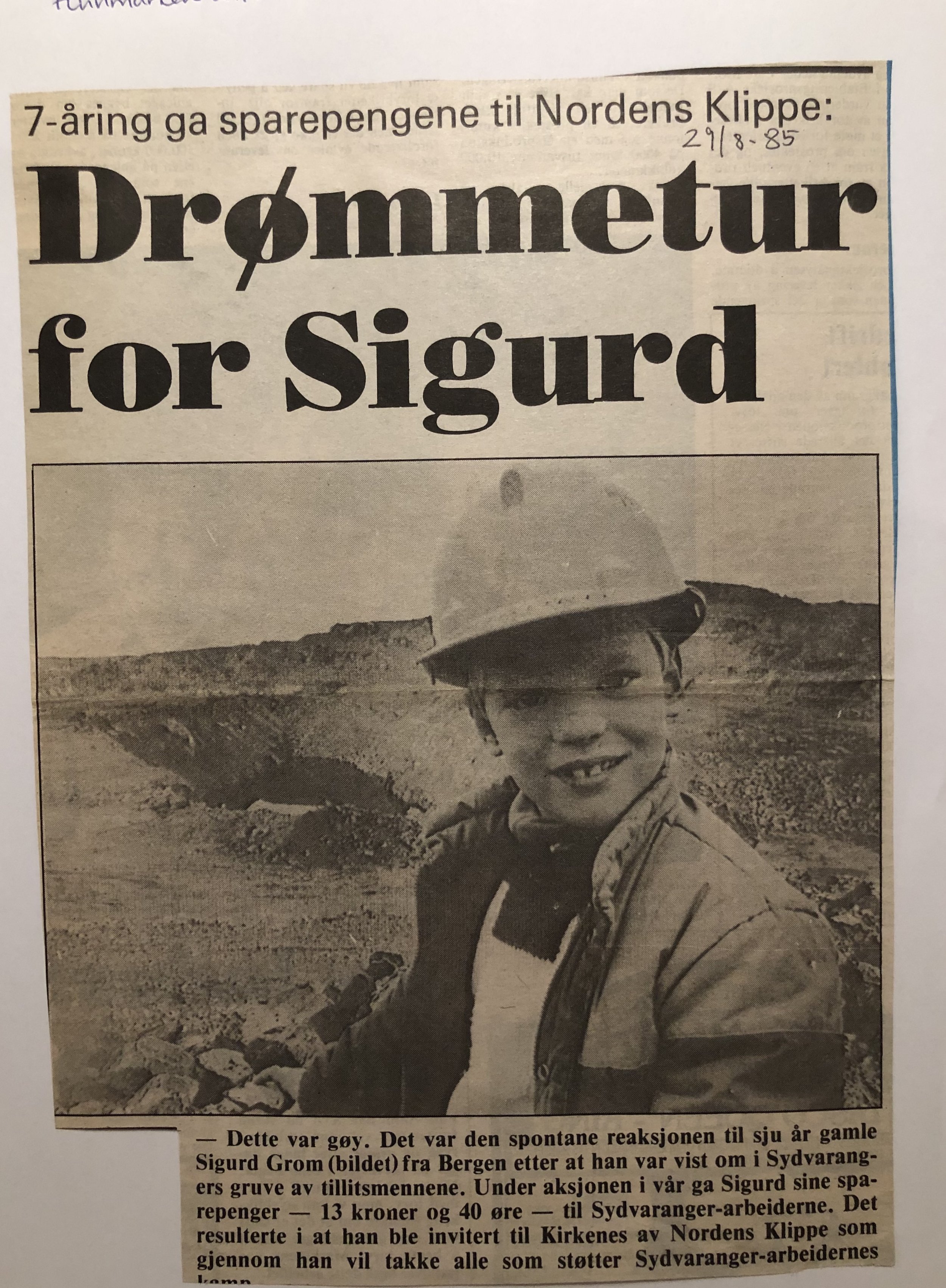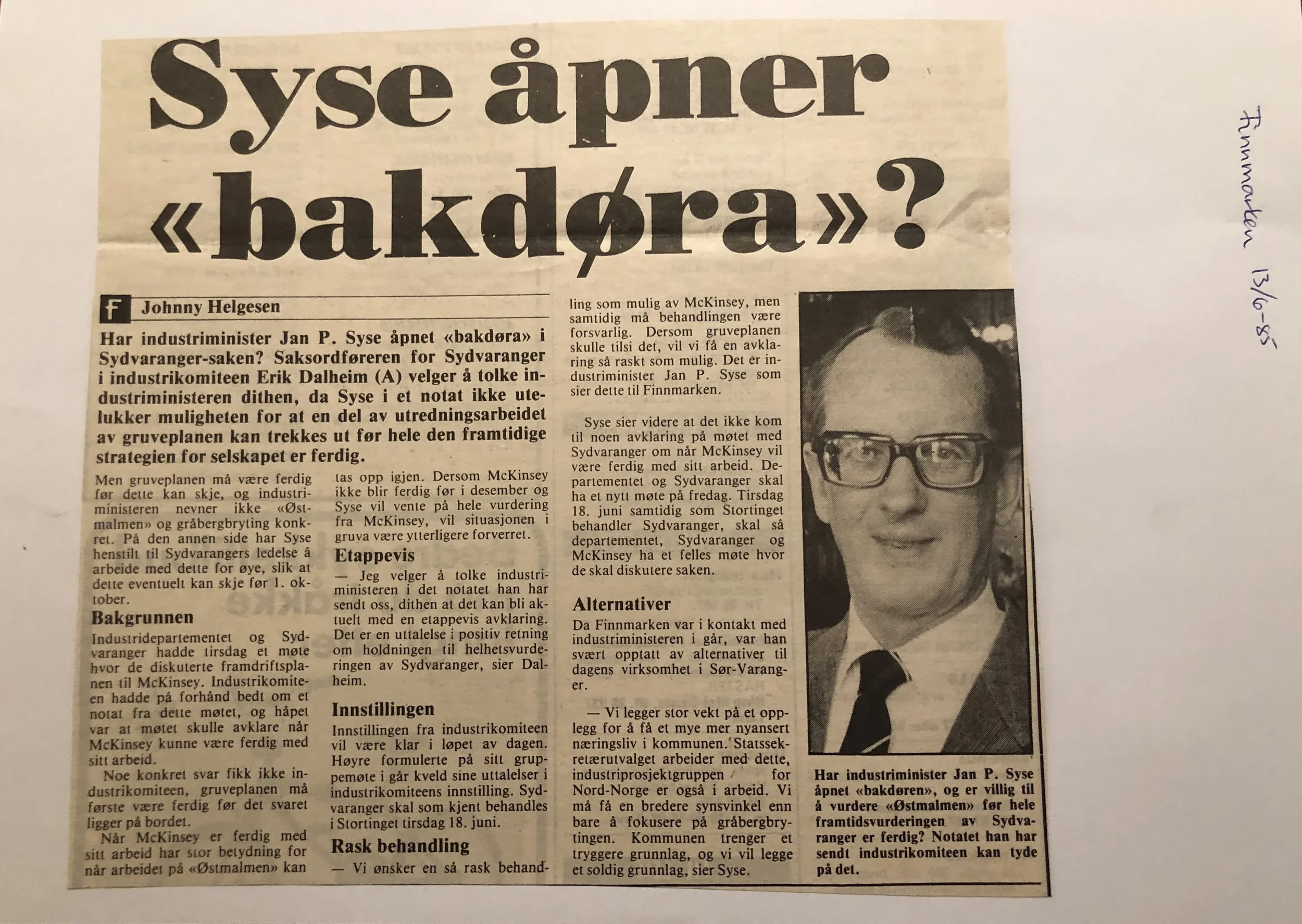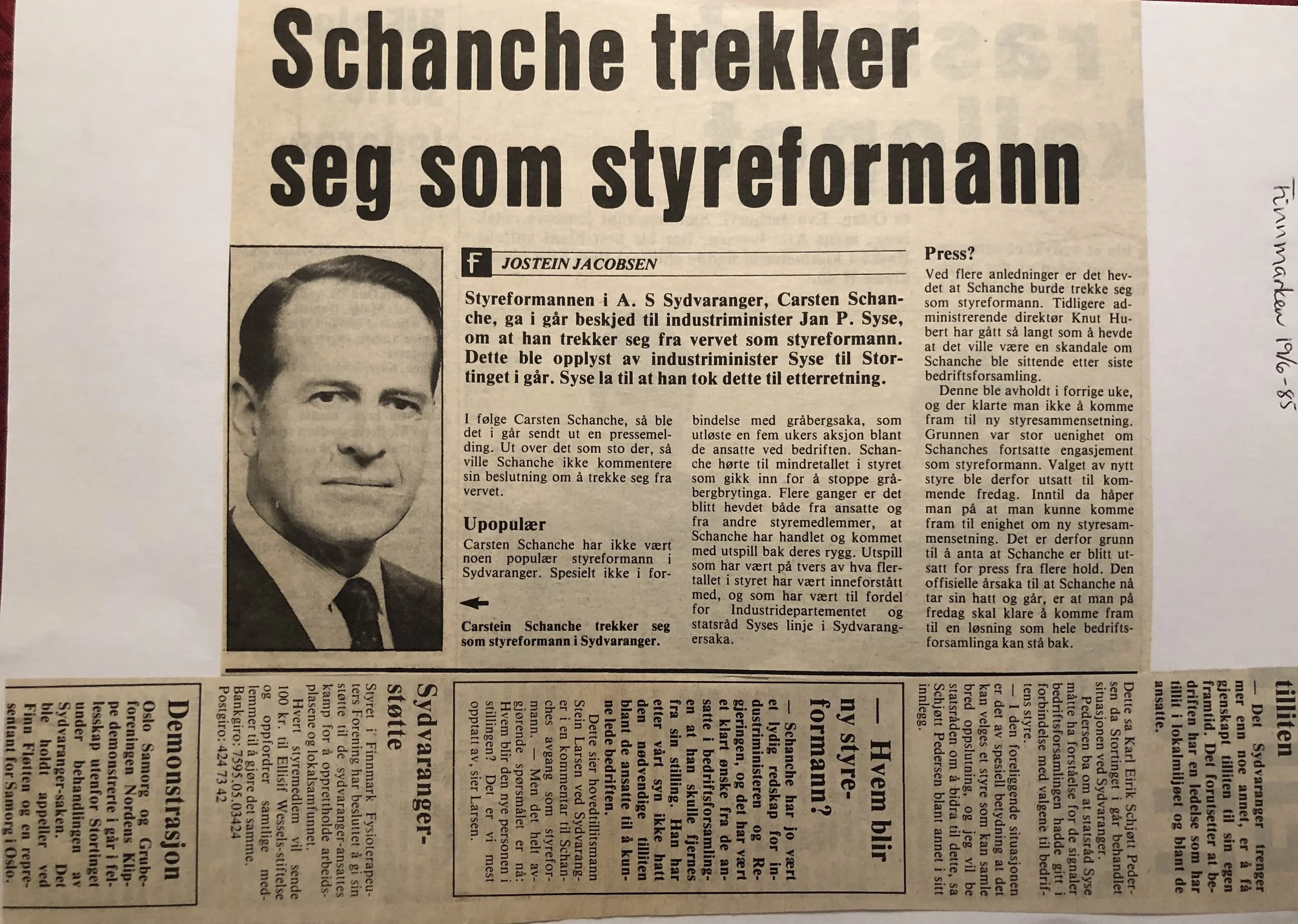 Faksimilene av presseoppslagene er ikke sortert i kronologisk rekkefølge. Jeg har, etter beste skjønn, gjort et utvalg av det massive materialet. Denne oversikten er ment å gi et visuelt - ikke nødvendigvis lesbart - inntrykk av den omfattende dekningen av Nordens Klippes kamp for arbeidsplasser og bosetting på midten av 1980-tallet, situasjonen for Sydvaranger og den politiske behandlinga av og kampen om fremtida til A/S Sydvaranger.