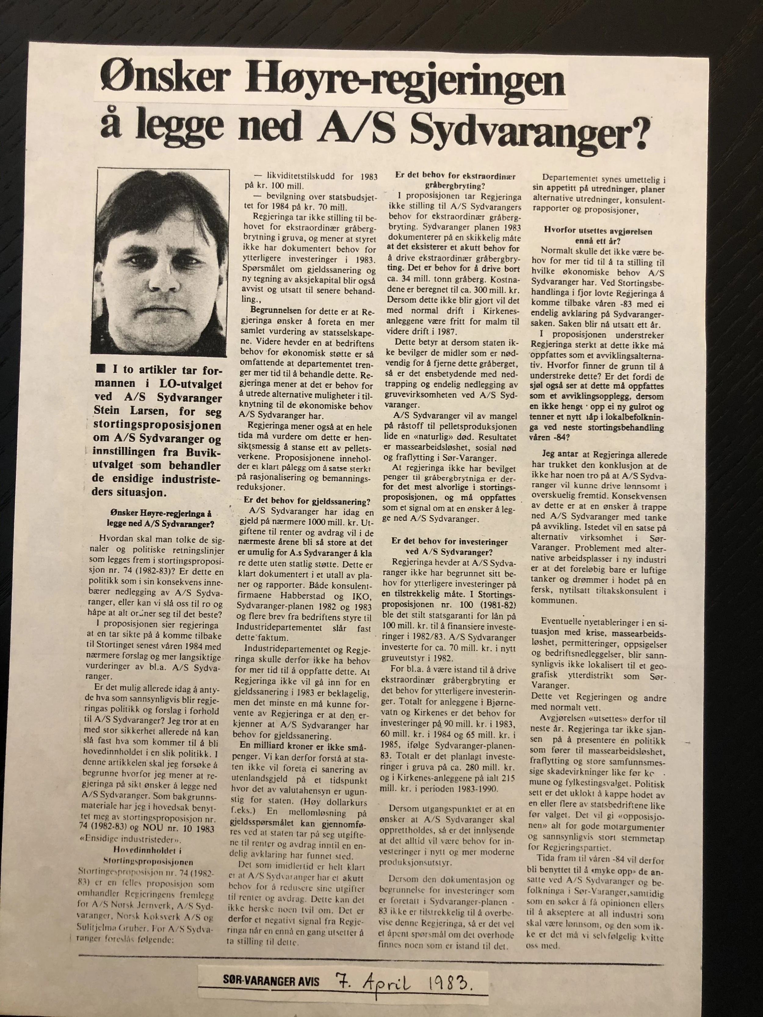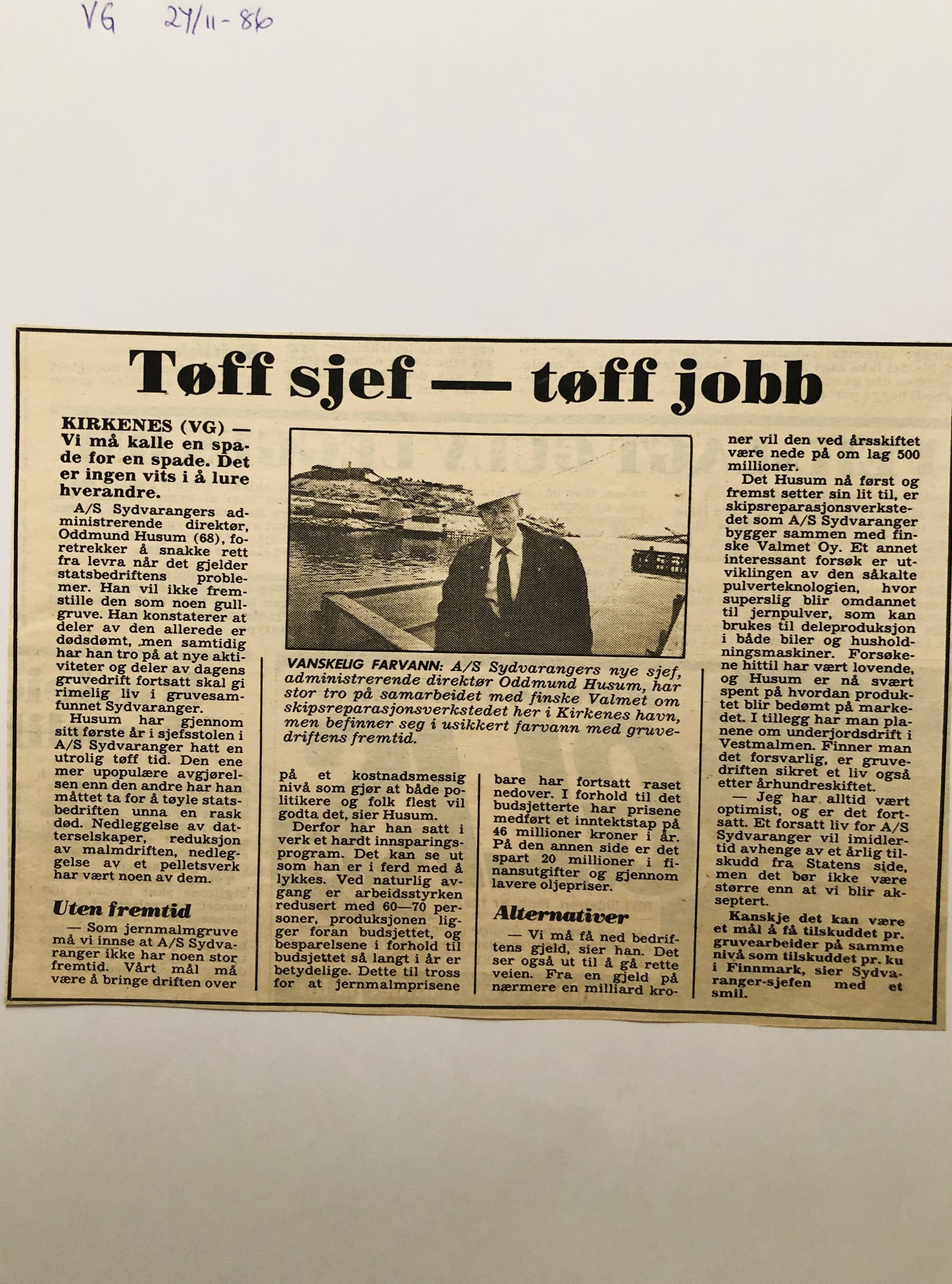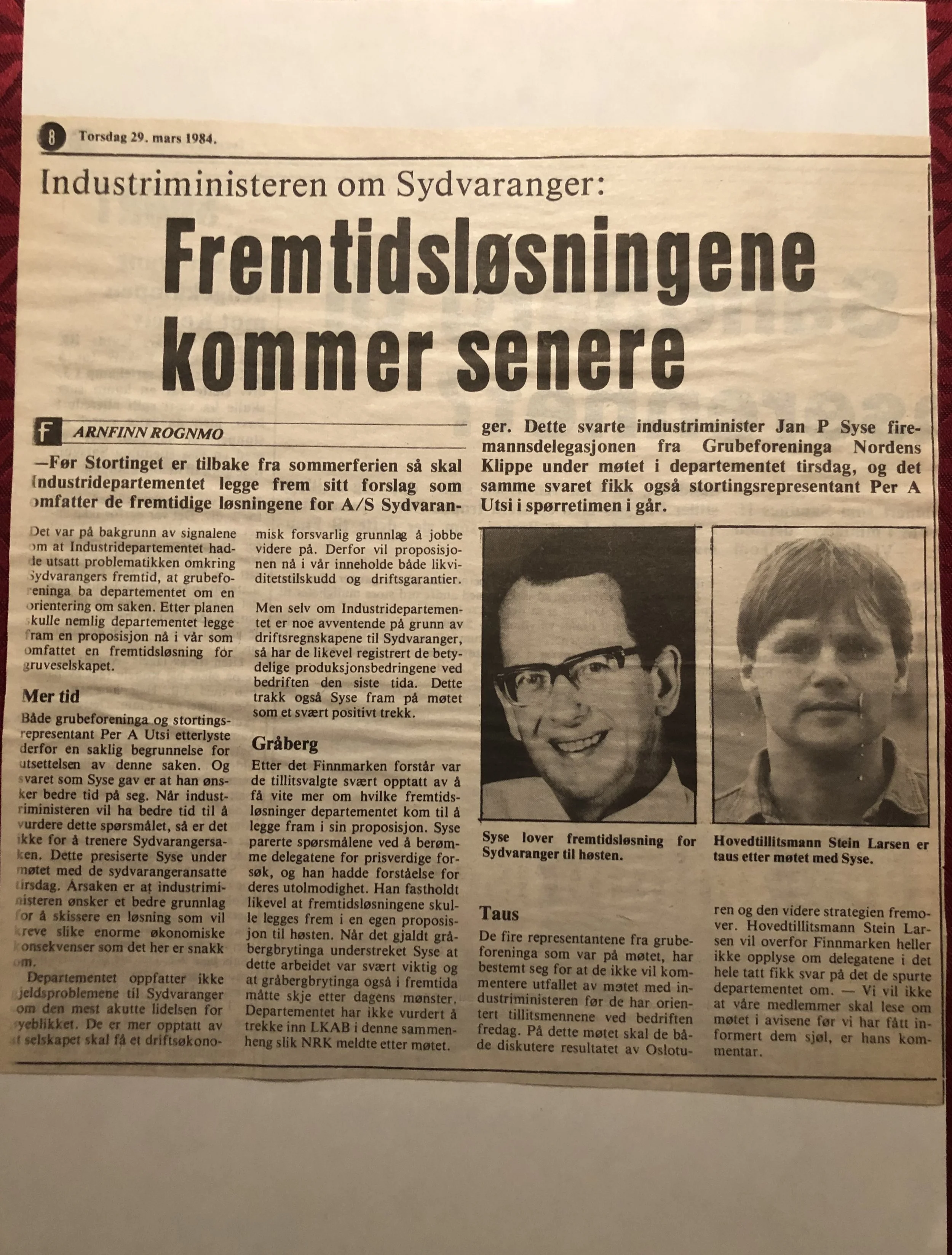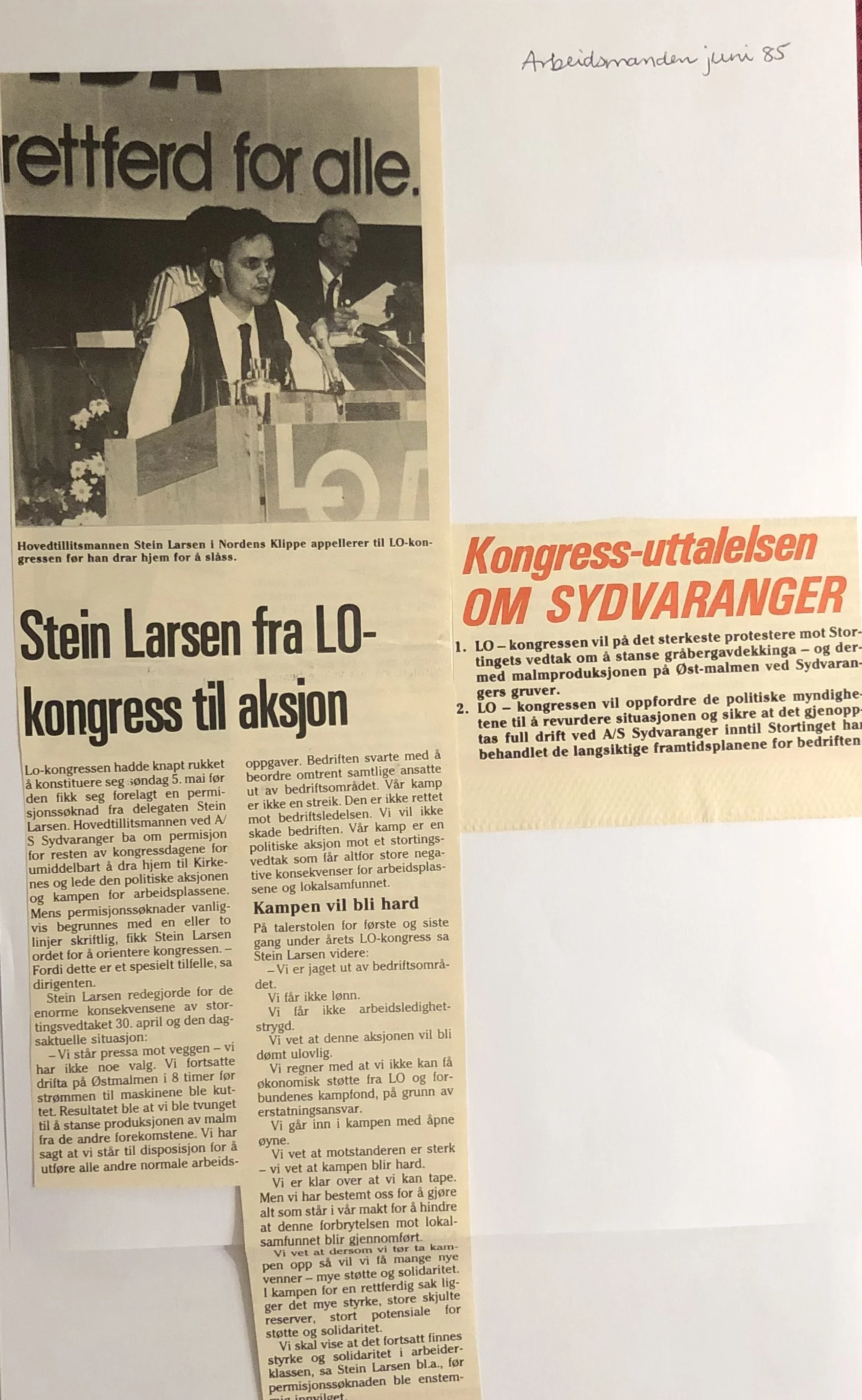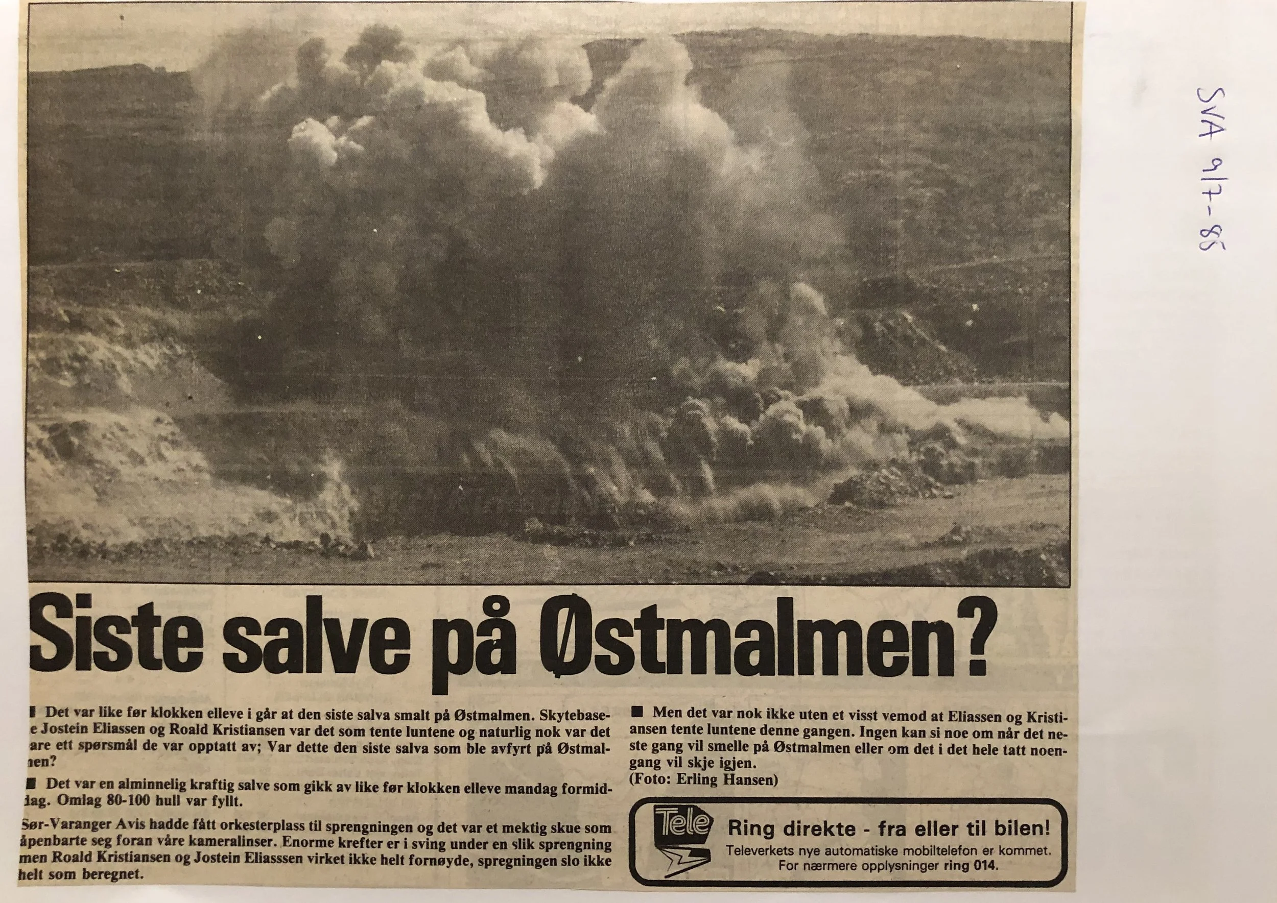 Faksimilene av presseoppslagene er ikke sortert i kronologisk rekkefølge. Jeg har, etter beste skjønn, gjort et utvalg av det massive materialet. Denne oversikten er ment å gi et visuelt - ikke nødvendigvis lesbart - inntrykk av den omfattende dekningen av Nordens Klippes kamp for arbeidsplasser og bosetting på midten av 1980-tallet, situasjonen for Sydvaranger og den politiske behandlinga av og kampen om fremtida til A/S Sydvaranger.