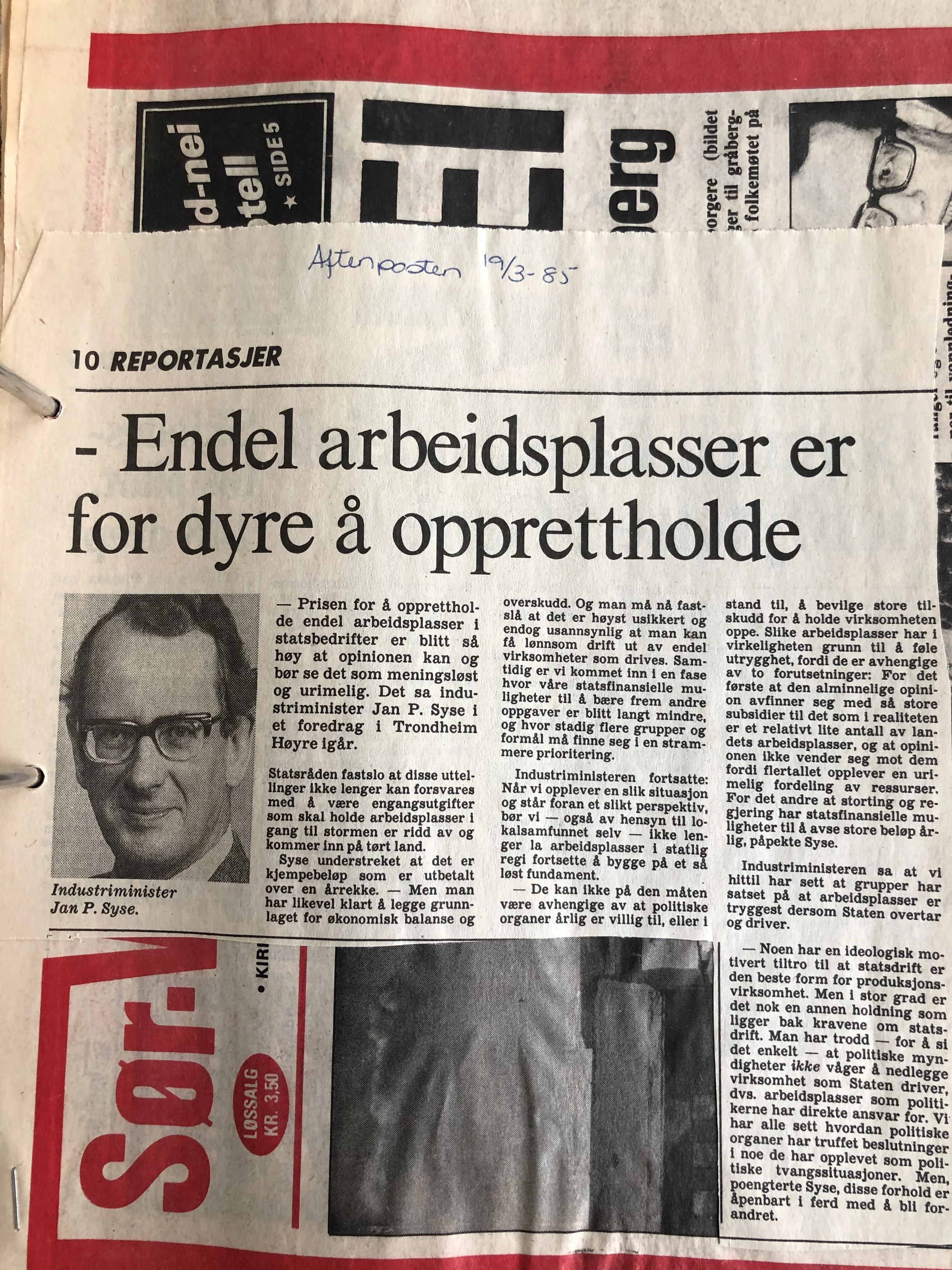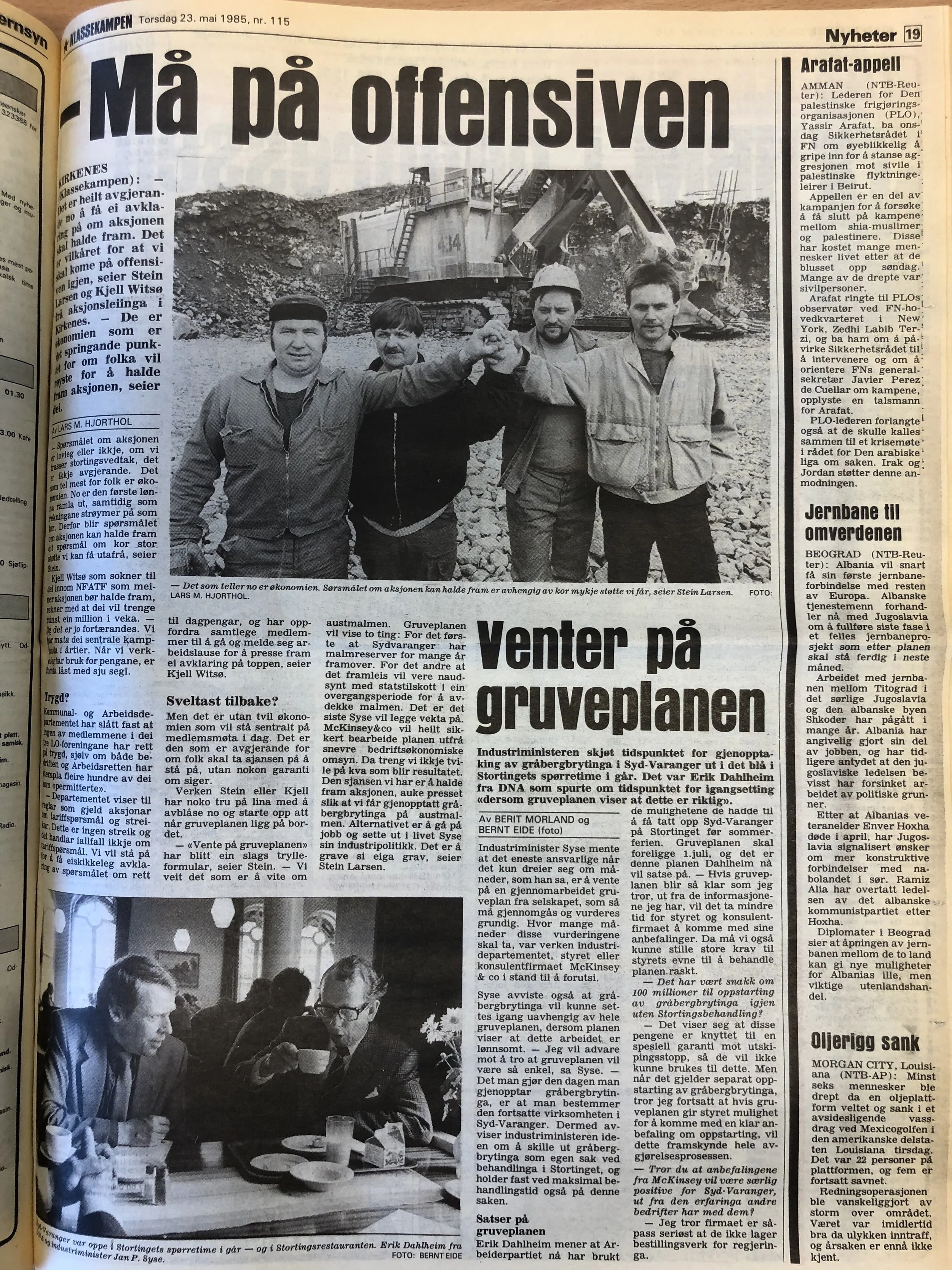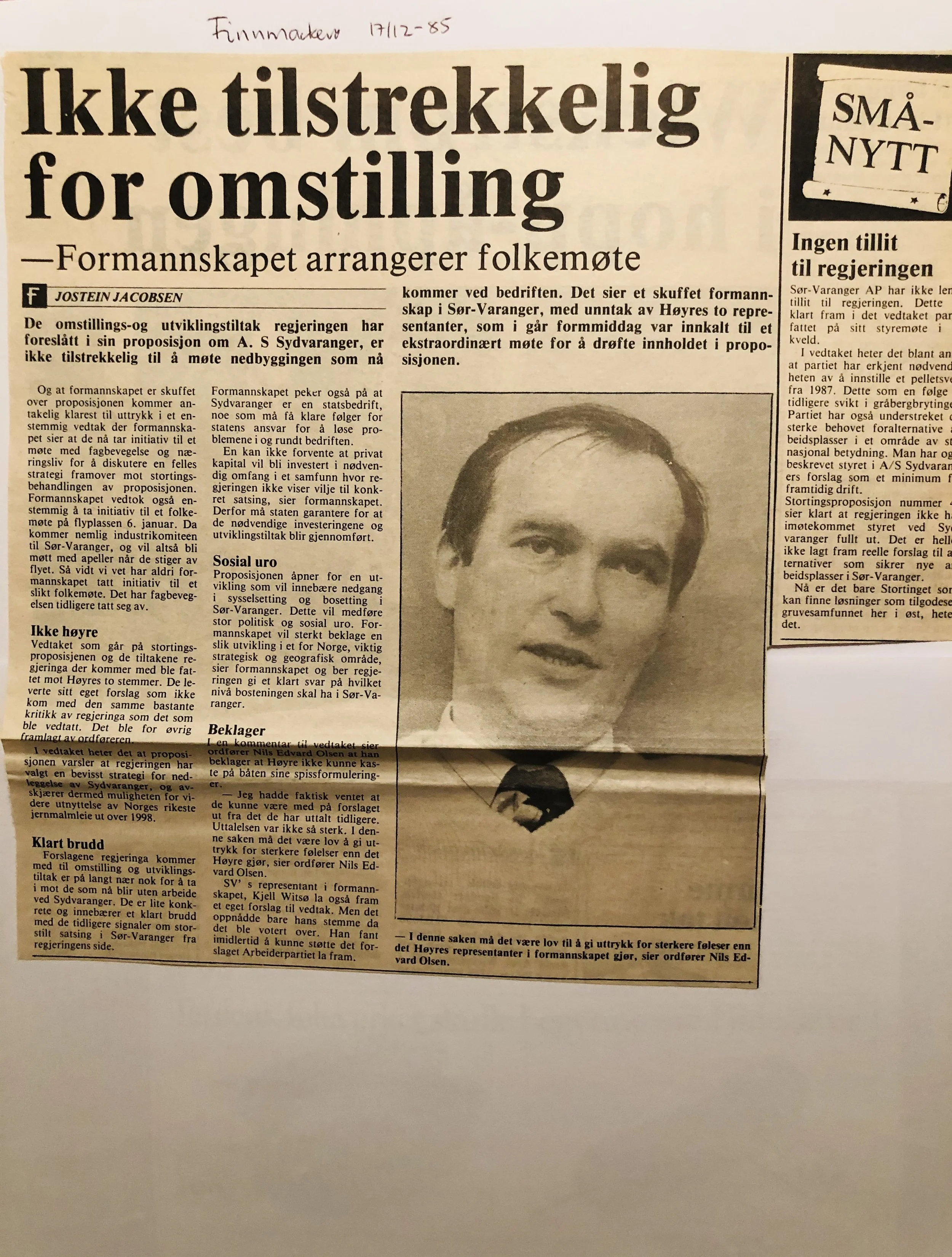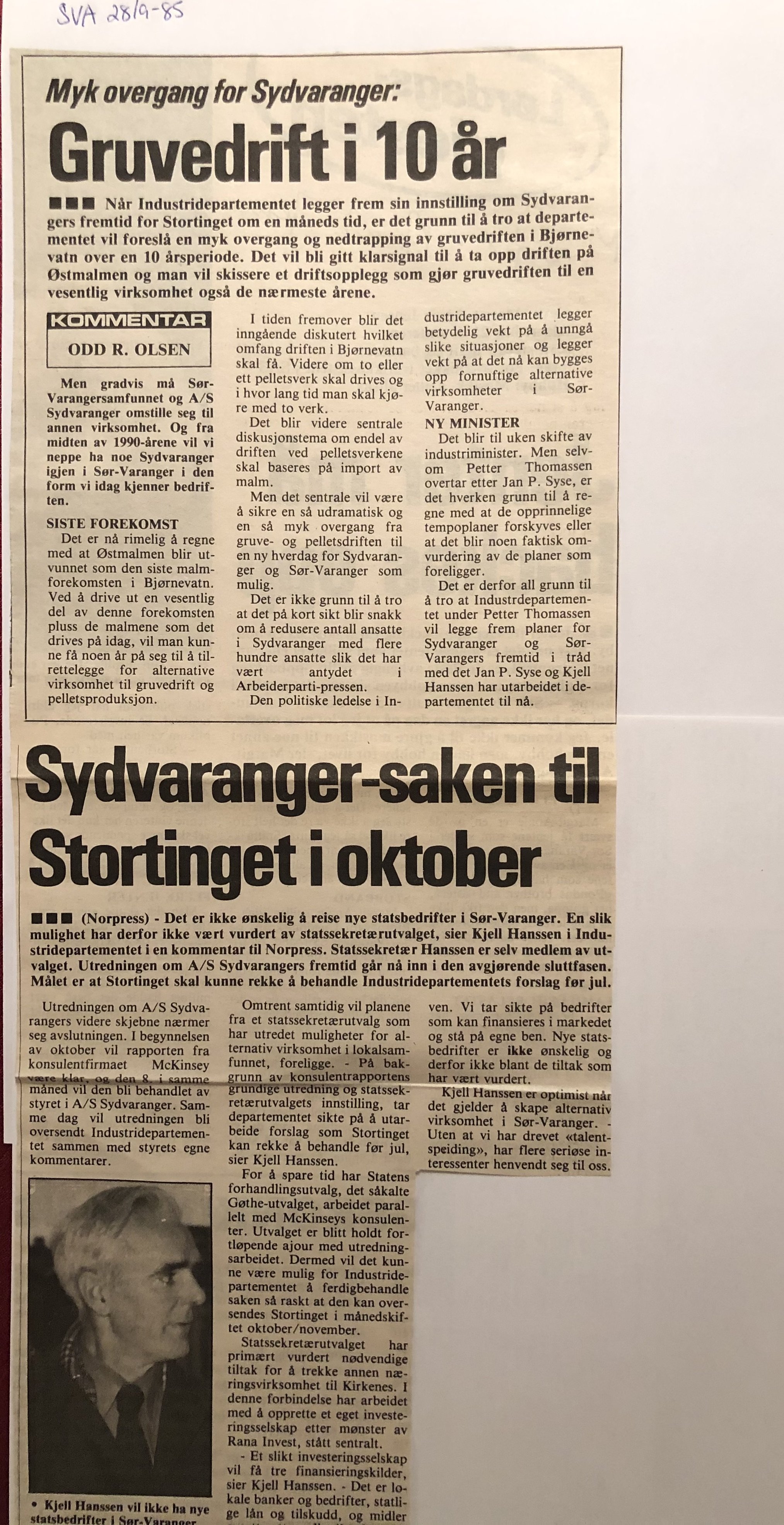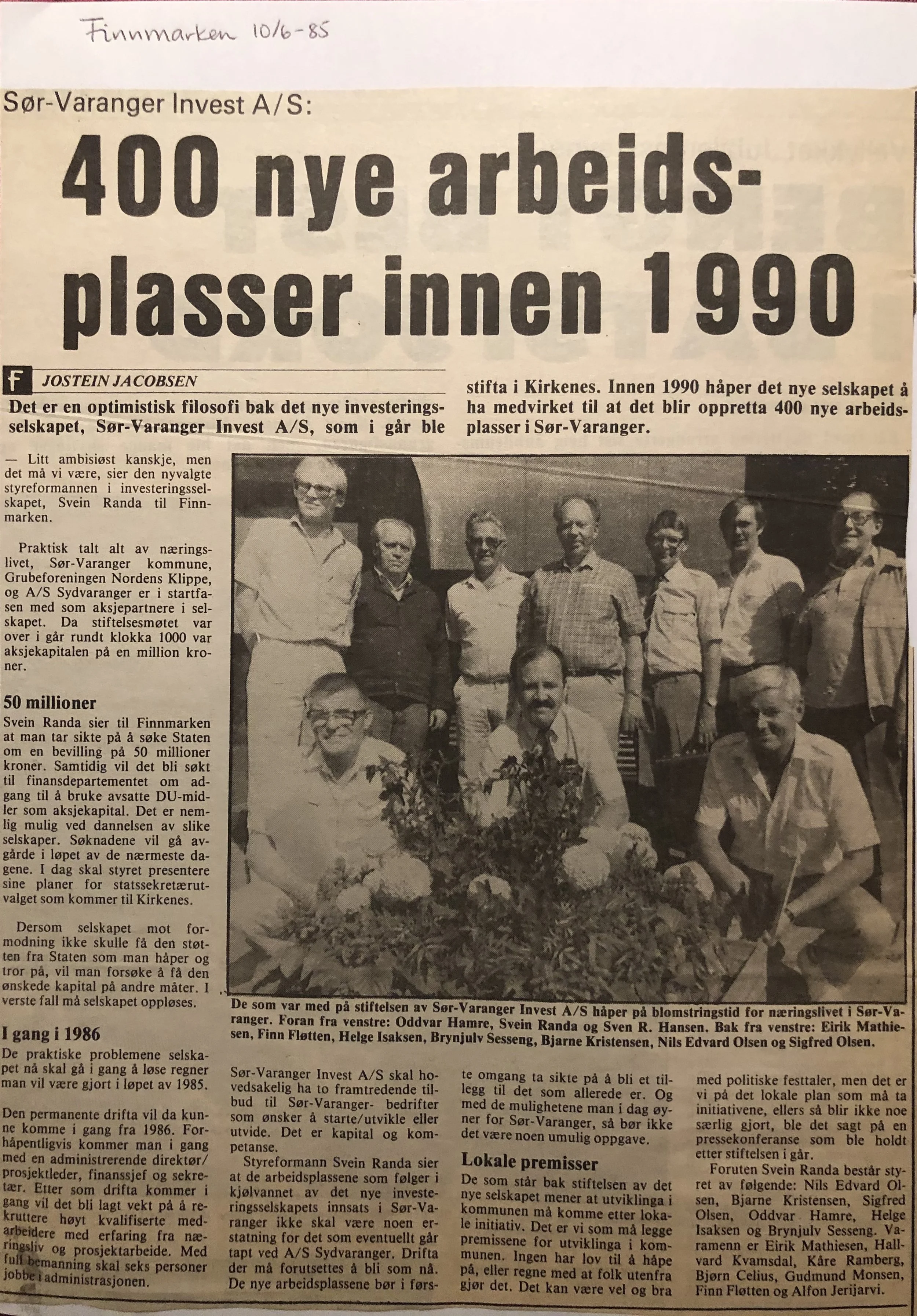 Faksimilene av presseoppslagene er ikke sortert i kronologisk rekkefølge. Jeg har, etter beste skjønn, gjort et utvalg av det massive materialet. Denne oversikten er ment å gi et visuelt - ikke nødvendigvis lesbart - inntrykk av den omfattende dekningen av Nordens Klippes kamp for arbeidsplasser og bosetting på midten av 1980-tallet, situasjonen for Sydvaranger og den politiske behandlinga av og kampen om fremtida til A/S Sydvaranger.