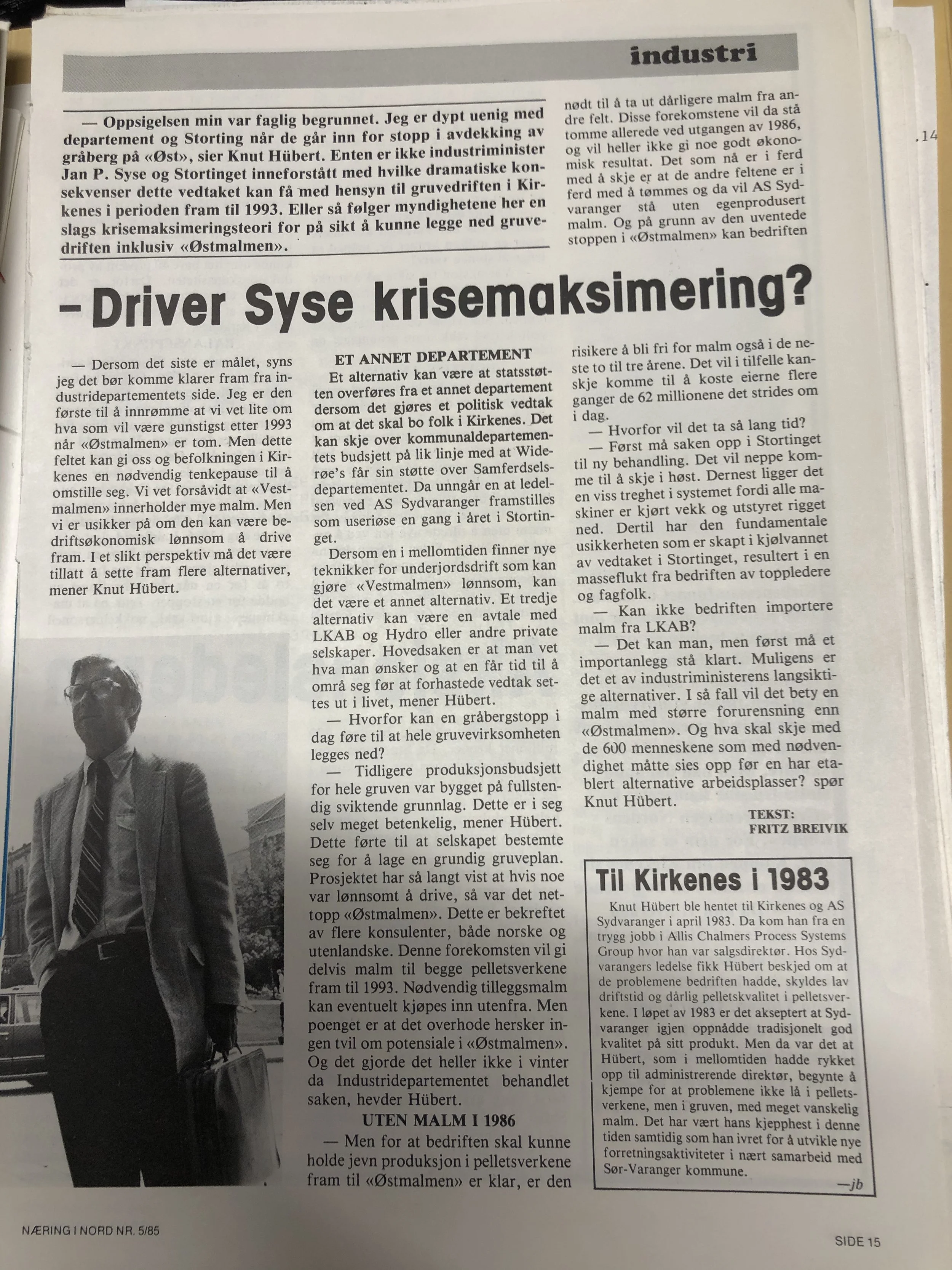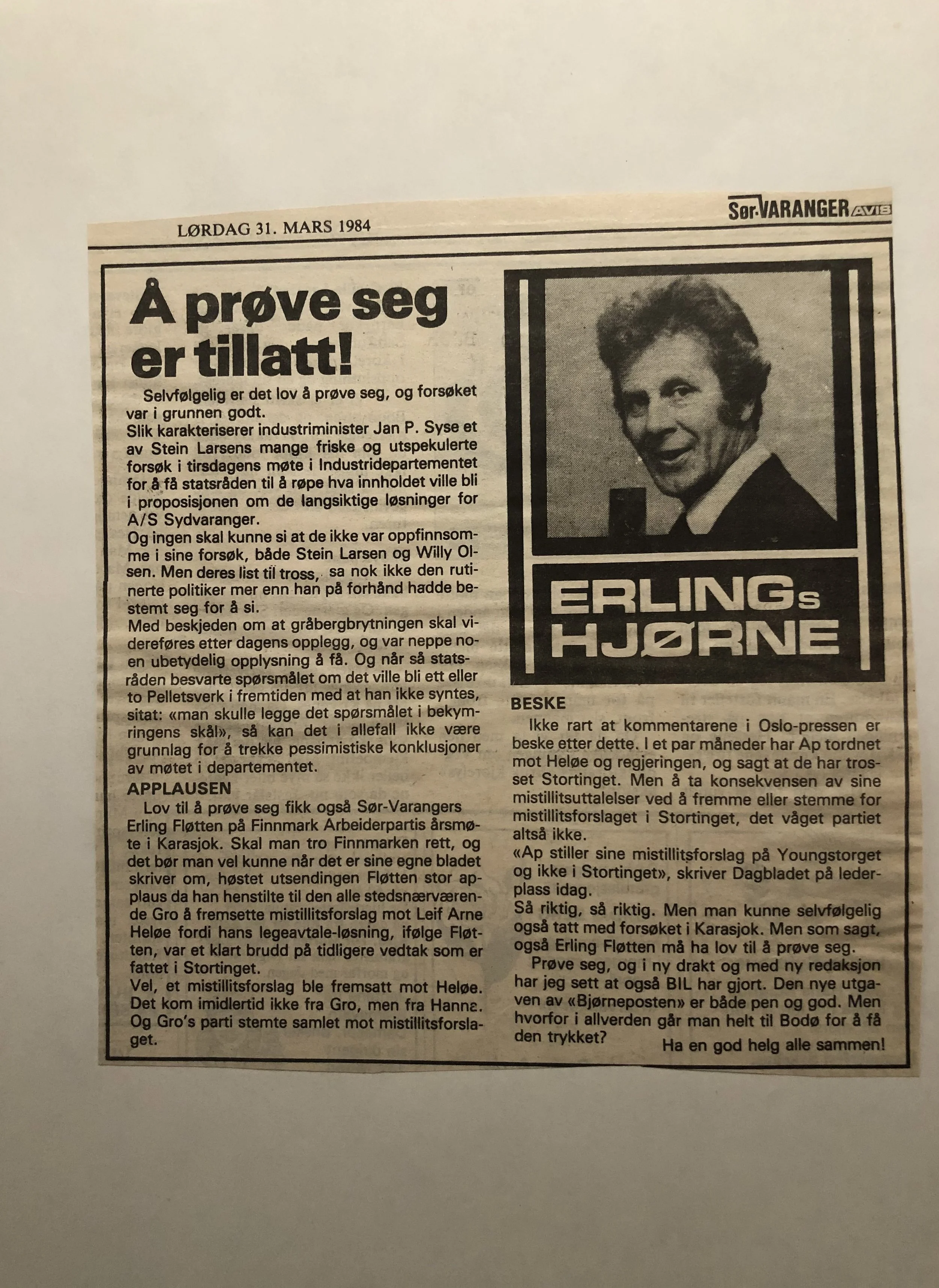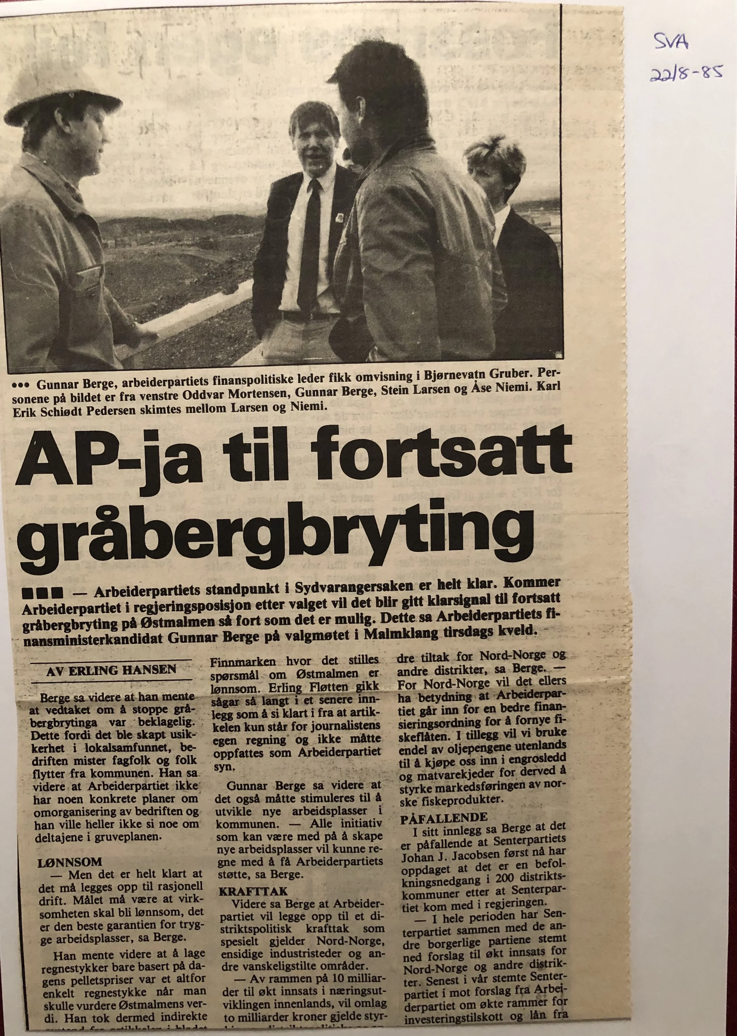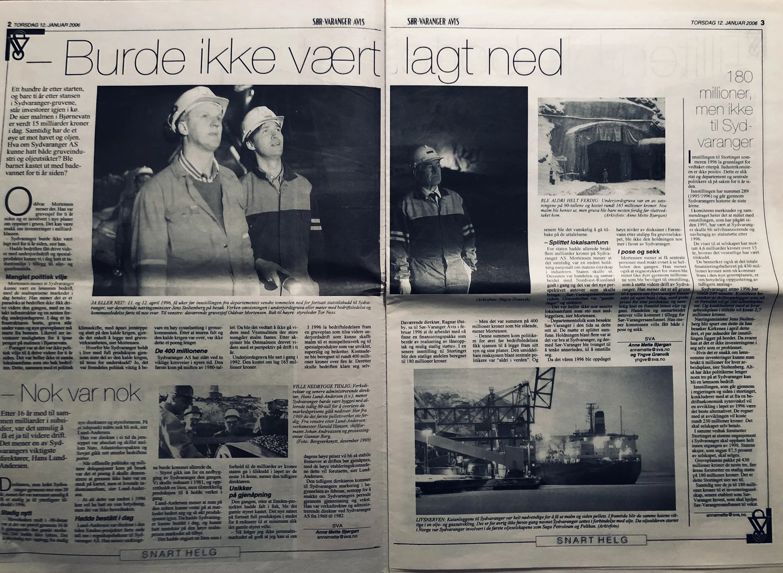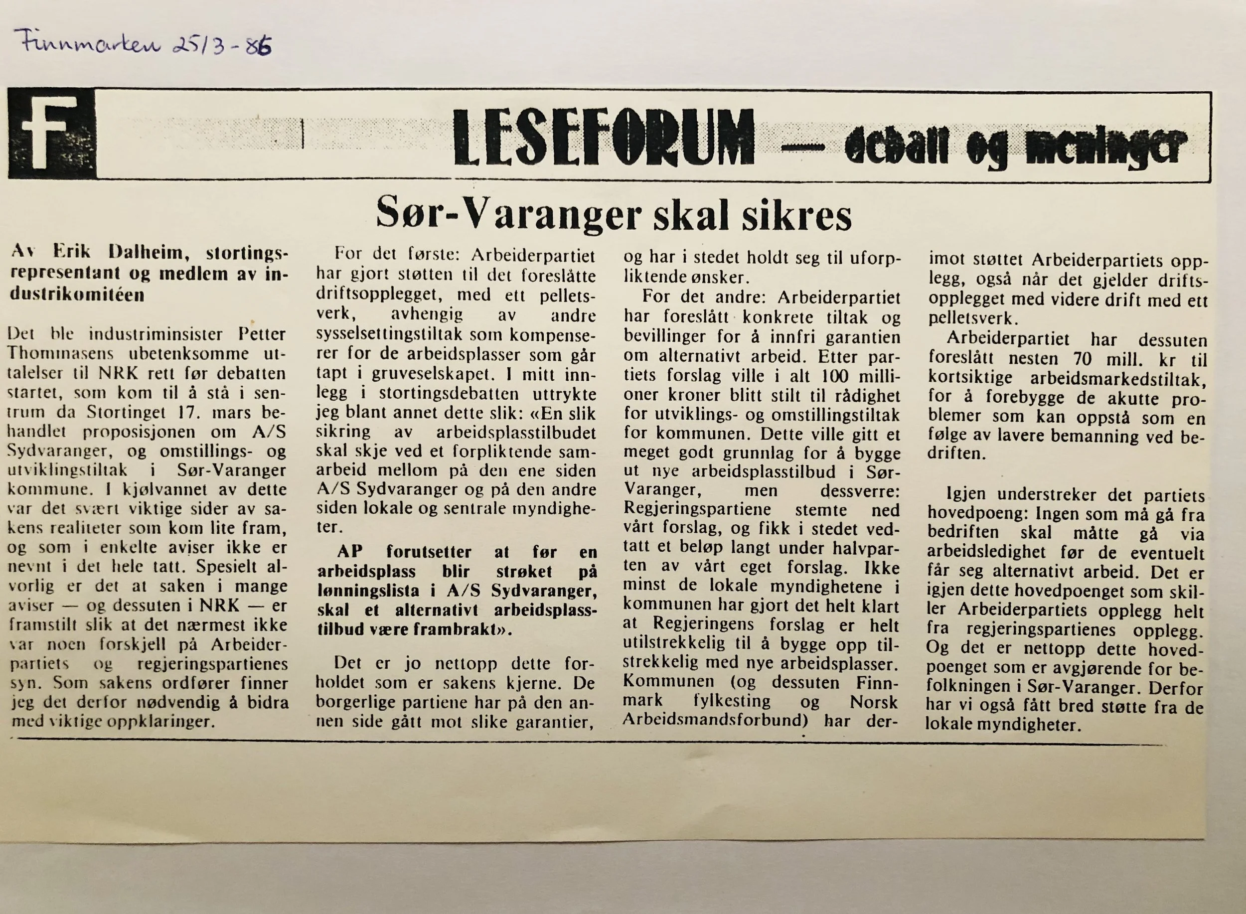 Faksimilene av presseoppslagene er ikke sortert i kronologisk rekkefølge. Jeg har, etter beste skjønn, gjort et utvalg av det massive materialet. Denne oversikten er ment å gi et visuelt - ikke nødvendigvis lesbart - inntrykk av den omfattende dekningen av Nordens Klippes kamp for arbeidsplasser og bosetting på midten av 1980-tallet, situasjonen for Sydvaranger og den politiske behandlinga av og kampen om fremtida til A/S Sydvaranger.